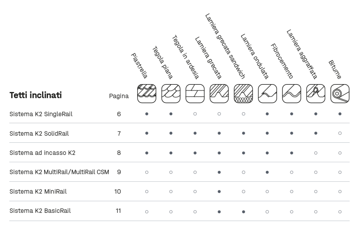 Le strutture di montaggio K2 Systems per i tetti inclinati, offrono una gamma completa di prodotti che si adattano a qualsiasi tipo di soluzione: