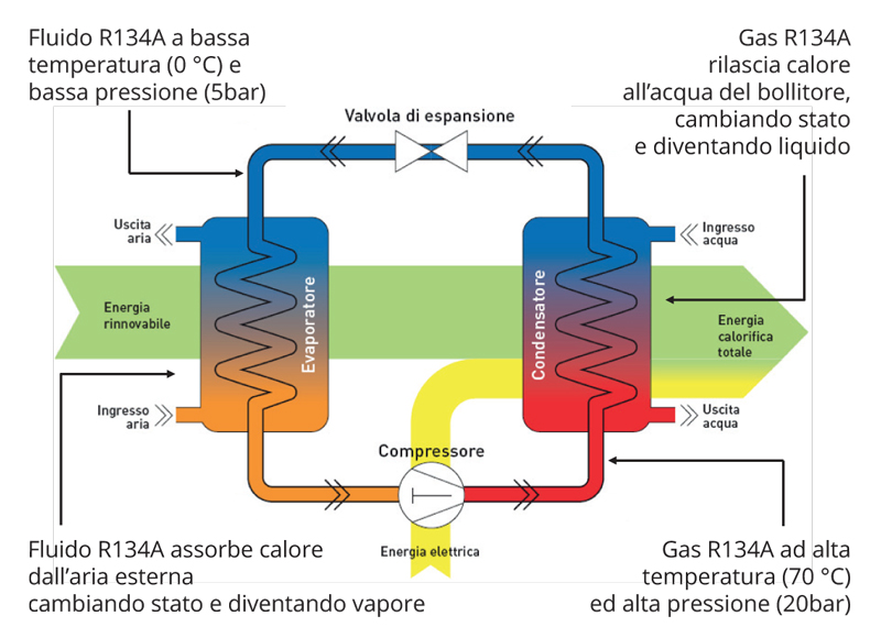 Il principio di funzionamento della pompa di calore per acqua calda sanitaria