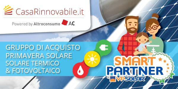 Per il Gruppo di Acquisto Primavera Solare relativo al Solare Termico e al Solare Fotovoltaico Altroconsumo ha scelto come fornitore la Rete di Installatori Smart Partner (www.smartpartner.it) di VP Solar che opera su tutto il territorio nazionale.