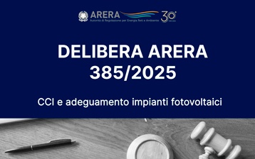 Delibera Arera 385/2025: adeguamento impianti fotovoltaici e CCI