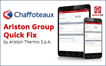 Chaffoteaux per i propri Centri di Assistenza Tecnica ha messo a disposizione l’applicazione per cellulari e tablet Ariston Group Quick-Fix. Uno strumento interattivo a portata di mano che guida il tecnico passo passo nell’identificazione e risoluzione di eventuali errori e problemi nelle pompe di calore.