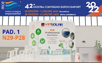 VP Solar sarà presente come espositore a Mostra Convegno Expocomfort 2022 a Milano dal 28 giugno al 1 luglio presso l’area That’s Smart Padiglione 1 stand N29-P28. Treviso 20