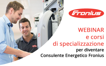 La seconda possibilità riguarda il corso di specializzazione per diventare consulente energetico Fronius, grazie al quale puoi conoscere a fondo i dispositivi hardware che consento di monitorare l’impianto fotovoltaico, di aumentare l’autoconsumo e familiarizzare con tutte le strumentazioni online.