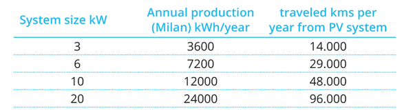 » The data shows that, for instance a PV system installed in Milan (Italy), with only half of the energy produced in an year, can feed an electric car for a travel of about 30.000 km with zero emissions.
