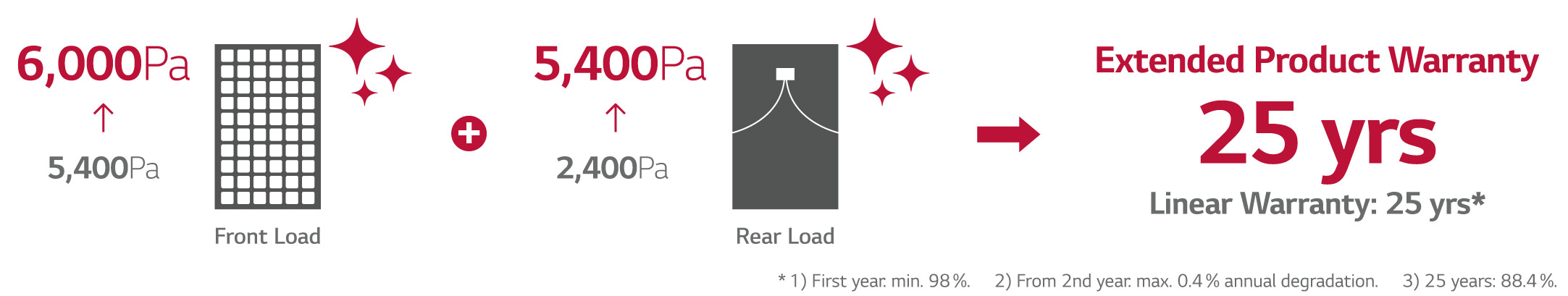 Already in 2017 it improve a 25-year warranty on both the product and the power, today the Pmax power warranty has been further improved, during the first 5 years 98%, from the 5th year 0.4% of annual degradation and from the 25th year is 88.4% guaranteed. (This applies to all modules produced after July 1, 2017).