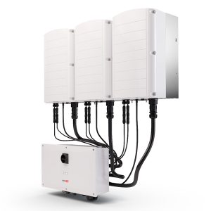 Three-phase inverter for commercial systems with Synergy technology. Composed of multiple separate units that are easy to connect and install thanks to their small weight and size.
