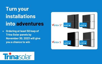 Purchase at least 50 kWp of Trina Solar PV panels from your distributor partner by November 30th, 2023, for a chance to win:
