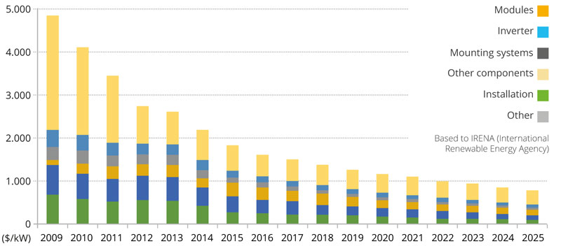 La conversione di energia dalla forma di radiazione solare a quella elettrica è assolutamente affidabile e sicura e offre oggi costi competitivi anche rispetto alle fonti di energia fossili.