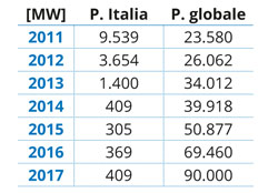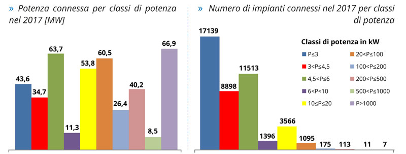 Gli ultimi dati riferiti al mercato italiano, per quanto riguarda la potenza connessa nel 2017, da Terna, fonte ANIE, mostrano un incremento dell’11% rispetto all’anno precedente con una potenza installata di circa 409 MW.