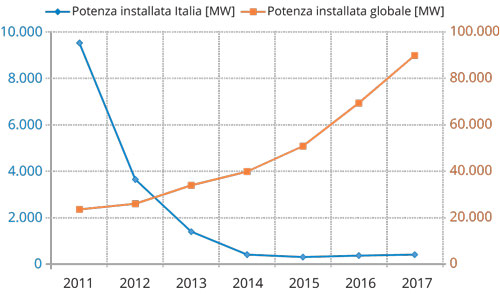 In Italia, dopo il boom di installazioni di impianti fotovoltaici, il mercato ha avuto una forte riduzione ma ora ha trovato una stabilizzazione che è sinonimo di assenza di speculazione e di investimenti ragionati e ponderati.