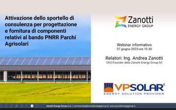 In vista della definitiva approvazione da parte della Commissione Europea del nuovo bando “Parco Agrisolare”, VP Solar ha attivato con Zanotti Energy Group un servizio informativo e di supporto per conoscere e poter cogliere le opportunità derivanti dall’importante misura prevista dal Ministero (MASAF), facente parte del PNRR.
