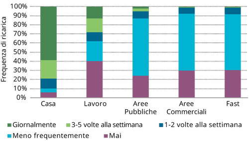 » Per un mercato già avanzato, per quanto riguarda le auto elettriche, come la Norvegia, è interessante analizzare la preferenza dell’utilizzo della postazione di ricarica, come evidenziato nel grafico seguente.