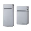Disponibile in 2 taglie RESU16H Prime con capacità 16kWh e RESU10H Prime con capacità 9.6 kWh entrambe possono essere collegate in cascata con un’altra unità della stessa classe di potenza e dimensione.