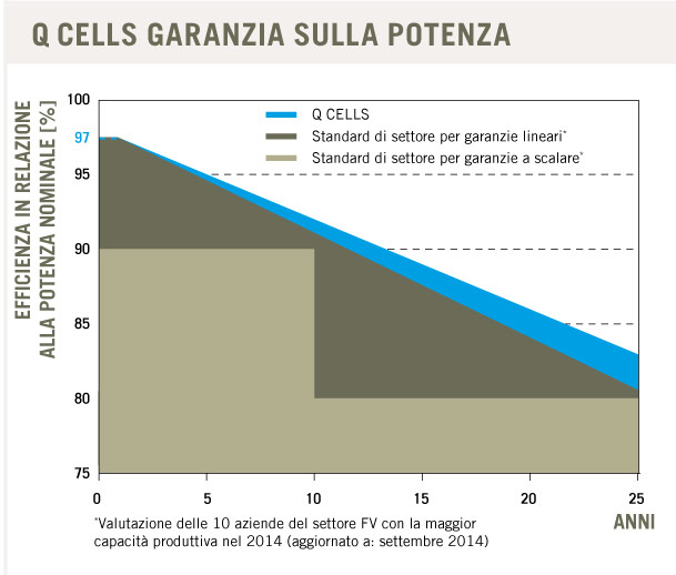 Con la tecnologia anti PID (Potential Induced degradation) studiata da Q Cells e sviluppata direttamente a livello della cella garantisce la sicurezza di rendimento a lungo termine.