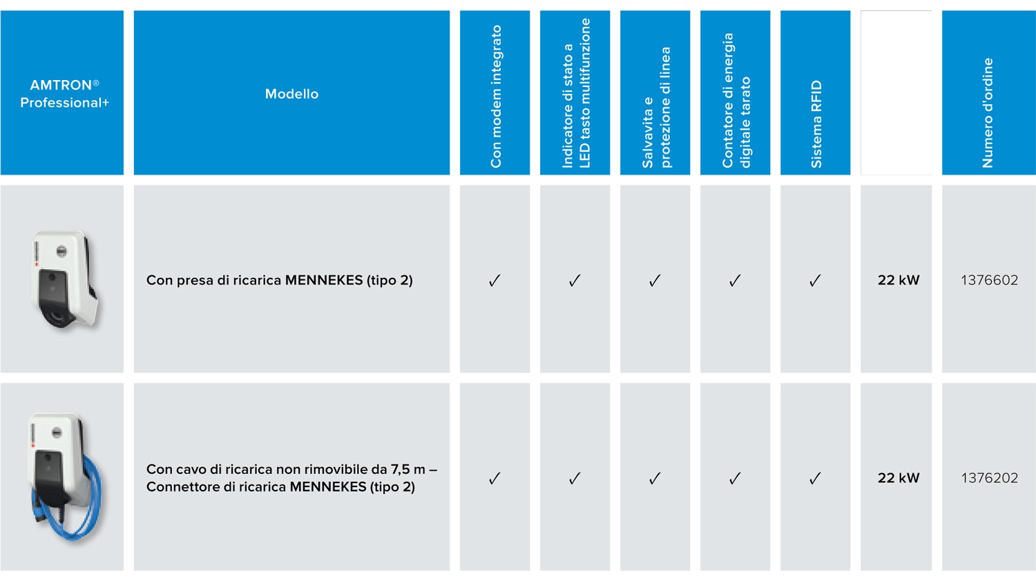Mennekes AMTRON Professional+ è una soluzione rivolta particolarmente alle aziende ed agli esercizi commerciali. Grazie all’utilizzo di elettronica all’avanguardia, che unisce la sostenibilità e l’efficienza costibenefici a caratteristiche utili, ad esempio per quanto riguarda la funzionalità “Plug & Charge”, una moderna gestione dell‘energia oppure un facile montaggio.
