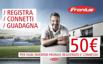 Registrando e connettendo il proprio inverter, Fronius fornisce 50 € per ogni impianto fino a 10 kW.