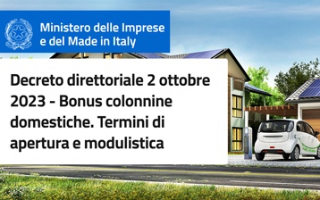 Il Ministero delle Imprese e del Made in Italy il 2 ottobre 2023 ha pubblicato un Decreto direttoriale per l’applicazione del Bonus colonnine domestiche previsto dal Decreto del 4 agosto