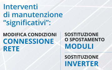 Il GSE nel 2017 ha emanato una guida per normare le modifiche, sia per manutenzione che per l’ammodernamento tecnologico, degli impianti fotovoltaici incentivati, ai sensi del D.M. 23 giugno 2016.