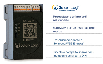 Novità nei sistemi di monitoraggio di Solar-Log, è arrivato il più piccolo, ma nello stesso tempo performante Solar-Log 50, un dispositivo che funge da Gateway tra l’impianto fotovoltaico e il