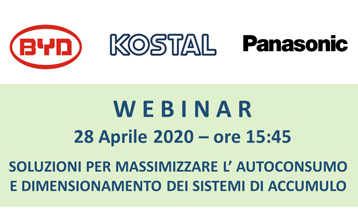 Kostal in collaborazione con Panasonic Europe e BYD ha organizzato un webinar per il prossimo 28 Aprile 2020 alle ore 15:45 dedicato al dimensionamento dei sistemi di accumulo e alla