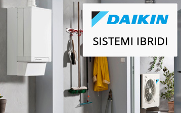 Daikin propone un’ampia gamma di soluzioni ibride con funzionamento coovalente dove pompa di calore e caldaia a condensazione possono funzionare insieme in serie. I sistemi ibridi factory made di Daikin