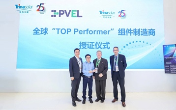 Alla SNEC PV Power Expo di Shanghai, a maggio, Kevin Gibson, amministratore delegato di PVEL, ha consegnato il premio Top Performer a Trina Solar.