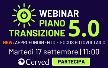 Il webinar sul “Piano Transizione 5.0”, ad accesso libero e gratuito, sarà tenuto da Cerved, in collaborazione con VP Solar, martedì 17 settembre ore 11:00.