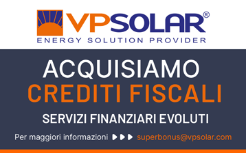 Ulteriori e dettagliate informazioni sulla cessione dei crediti fiscali superbonus/ecobonus possono essere richieste presso lo stand VP Solar nel prossimo Key (stand 200 nel padiglione D1) dal 5 al 7 marzo a Rimini.