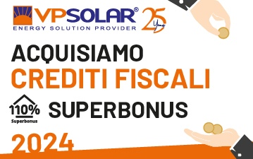Con la cessione dei crediti fiscali VP Solar rinnova l’impegno a supporto dei propri clienti, studiando e proponendo soluzioni e servizi coerentemente con le diverse fasi di sviluppo del mercato. In relazione alla cessione del credito fiscale VP Solar ha attivato iniziative di acquisto già a partire dal 2019, con un proprio team dedicato.